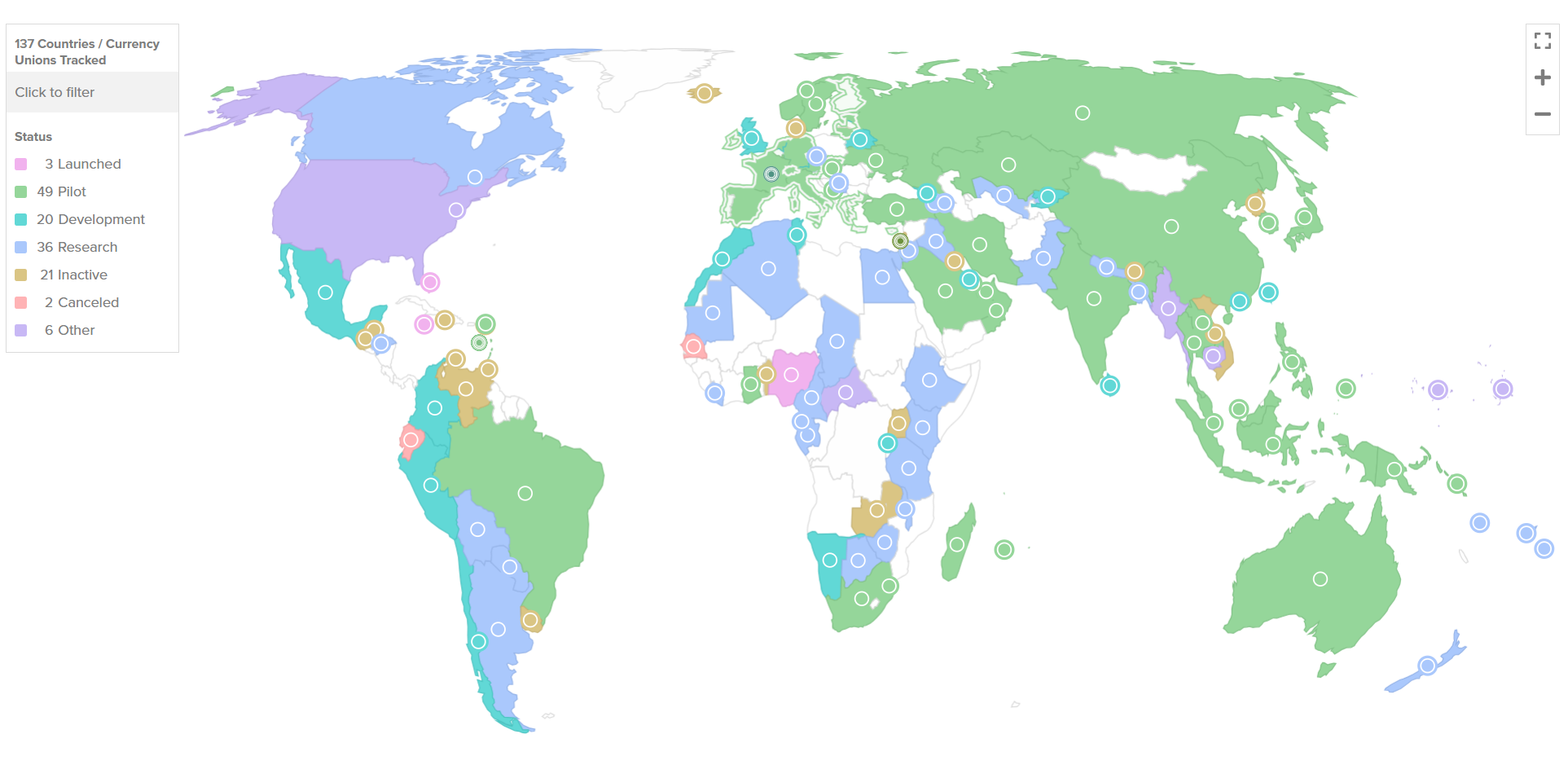 137 countries (98% of global GDP) are exploring a CBDC; 72 are in advanced stages; 49 pilots are active worldwide.